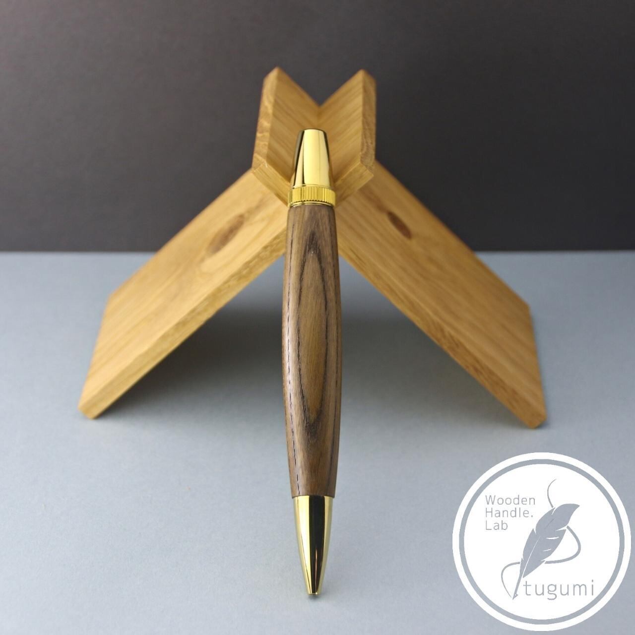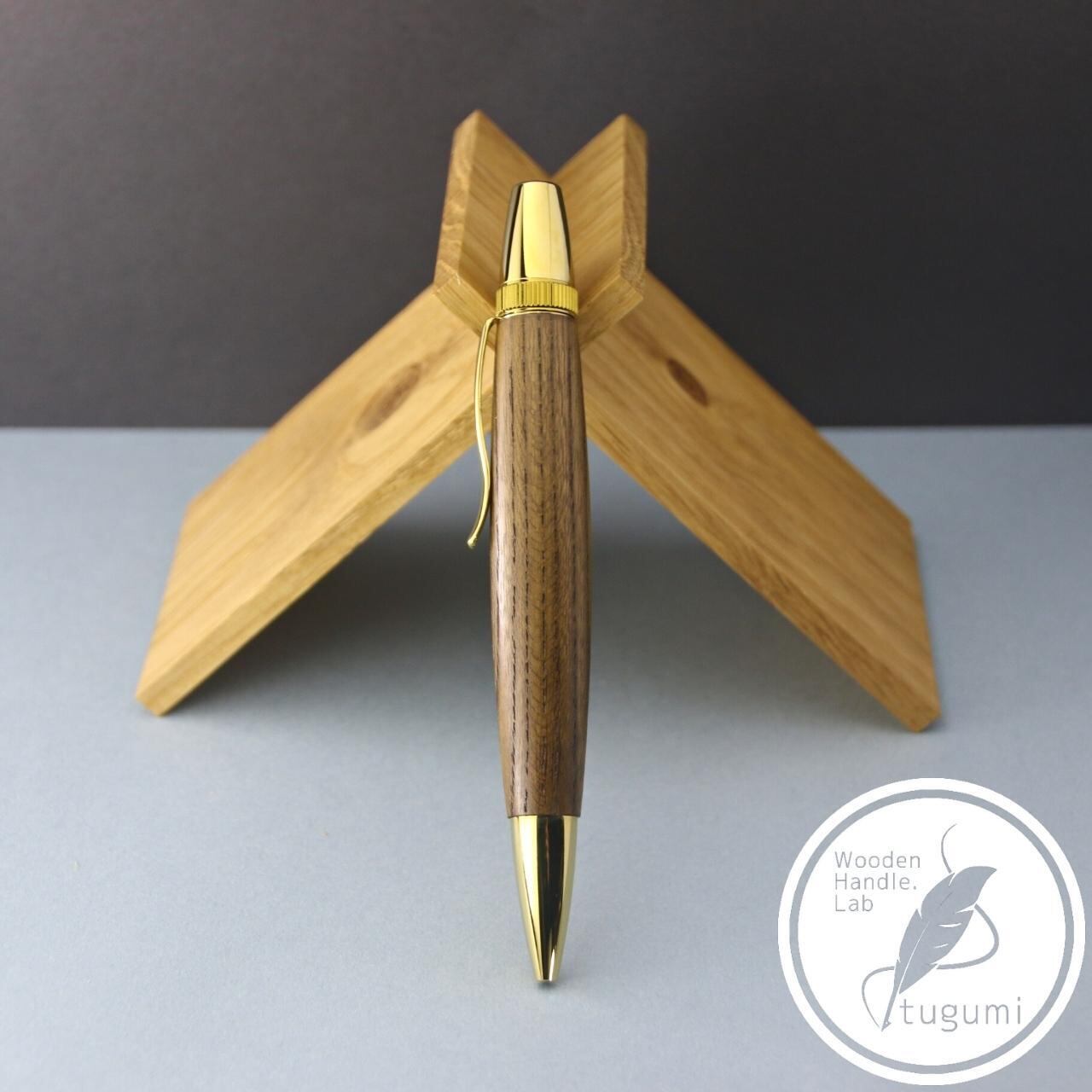 全長約137mm前後で木軸を楽しめるワンピースツイストタイプのボールペンです。